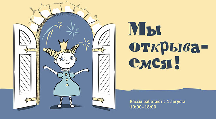 Открытие №2: с первого августа начинает работу касса театра. В штатном режиме с 10:00 до 18.00. Но билеты на спектакли вы можете купить уже сейчас на сайте театра: