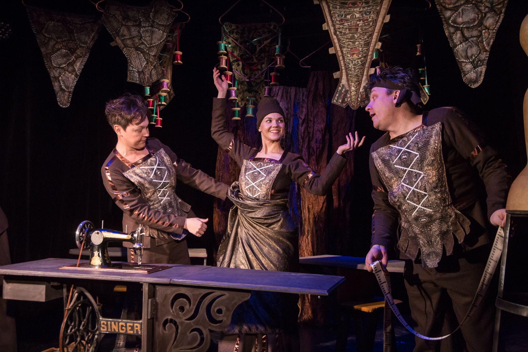 Пьеса «Храбрый портняжка» написана по одной из самых известных сказок братьев Гримм. Её главный герой портной Ганс обретает веру в себя, прикончив одним ударом семь мух. Ганс не силён и не богат, но обладает исключительной находчивостью и смекалкой, он ловок, смел и умён. Эти качества помогают обычному человеку победить огромных великанов. В финале простой портняжка женится на принцессе.