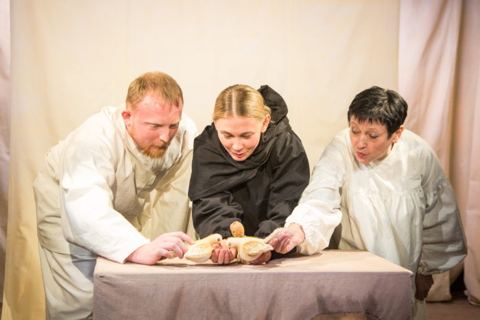 Знакомую всем историю о судьбе девочки, которая осталась сиротой и попала в дом к злой мачехе, в спектакле рассказывает сама Хаврошечка. Она с нежностью вспоминает свои счастливые детские годы, маму и отца. Трудно живется девушке в чужой семье, и только доставшаяся ей в наследство коровушка Рябушка помогает ей своей волшебной силой.
