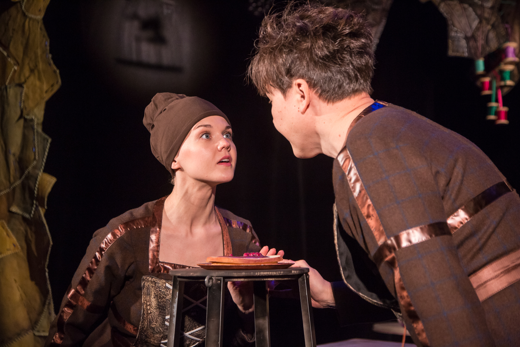 Пьеса «Храбрый портняжка» написана по одной из самых известных сказок братьев Гримм. Её главный герой портной Ганс обретает веру в себя, прикончив одним ударом семь мух. Ганс не силён и не богат, но обладает исключительной находчивостью и смекалкой, он ловок, смел и умён. Эти качества помогают обычному человеку победить огромных великанов. В финале простой портняжка женится на принцессе.